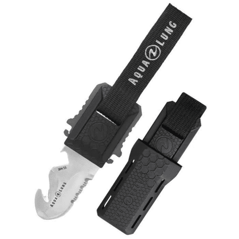 De kling heeft een lengte van 9,5 cm en is vervaardigd uit 304 roestvrij staal, wat een goede bescherming biedt tegen corrosie in zout en zoet water. De stompe punt is bewust gekozen om het risico op verwondingen of beschadiging van uitrusting te minimaliseren, terwijl het mes uitstekend geschikt blijft voor het doorsnijden van lijnen, netten en andere obstakels onder water.