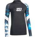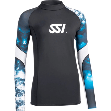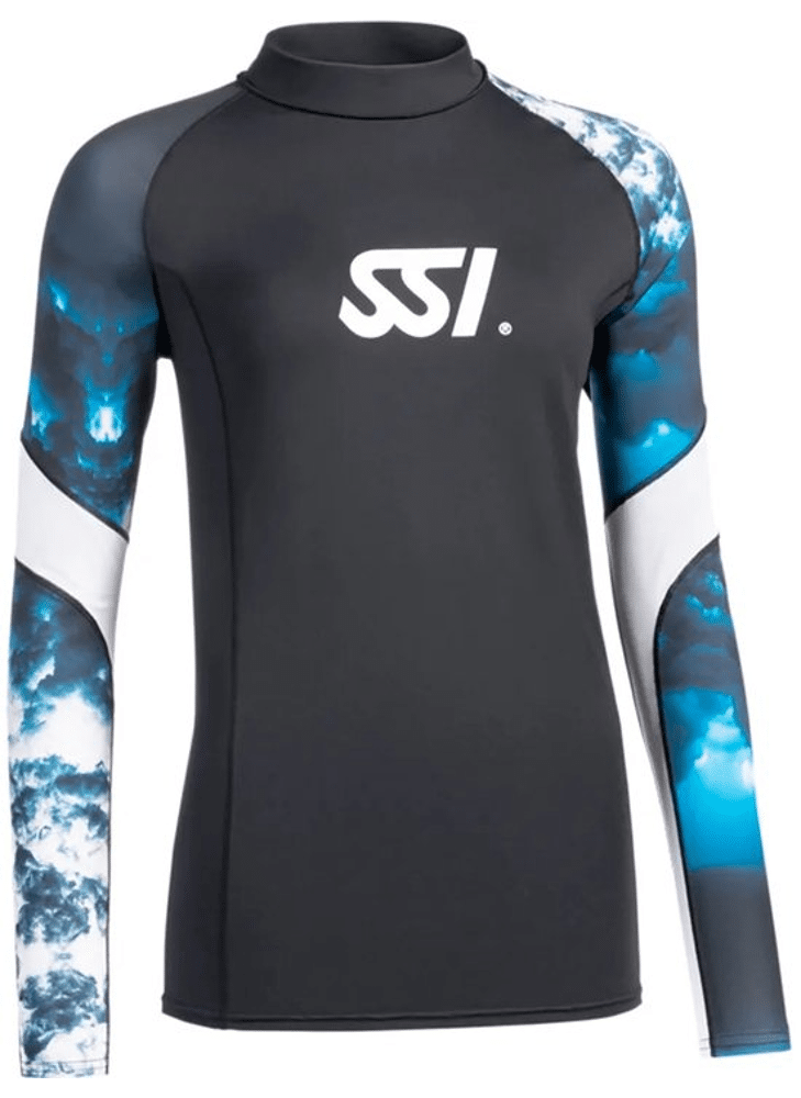 De rash guard is uitgevoerd in een tijdloze blauwe kleur en afgewerkt met de herkenbare SSI‑, “Blue Oceans”‑ en MyDiveGuide‑logo’s, wat zorgt voor een sportieve en professionele uitstraling. Dankzij het ruime maatbereik van XXS tot XXL is dit model geschikt voor vrijwel elke lichaamsbouw en eenvoudig te combineren met zwemkleding, wetsuits of shorts.